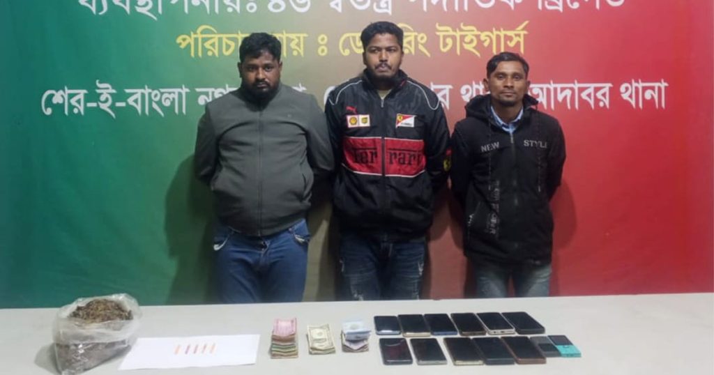 গ্রেপ্তারকৃতরা হলেন— মো. আলামিন (৩২), মো. মনির হোসেন (৩৮) ও জয় (২৫)।