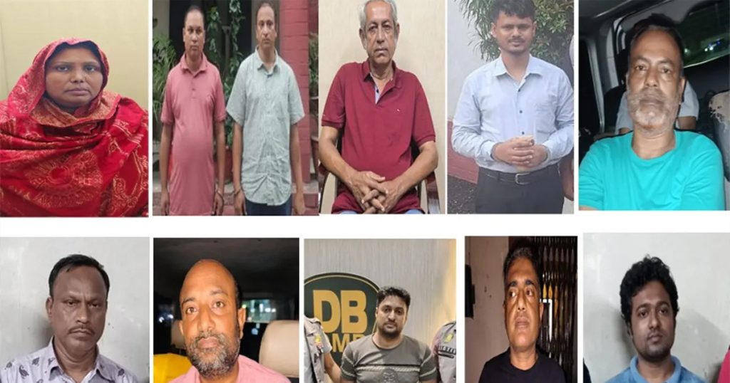 গ্রেপ্তারদের মধ্যে রয়েছেন- ঢাকা কদমতলী থানা এলাকার সংরক্ষিত নারী কাউন্সিলর সুলতানা আহমেদ লিপি (৪৬), নিষিদ্ধঘোষিত আওয়ামী লীগের সাবেক এমপির এপিএস শাহ মুহাম্মদ সবুর হোসেন (৪৮), কৃষক লীগের গাইবান্ধার নেতা শাহ বিপুল খন্দকার ওরফে বদি (৪০), অনলাইন অ্যাক্টিভিস্ট কামাল পাশা চৌধুরী (৬৫), ছাত্রলীগের সাবেক নেতা মো. সোহাগ মিয়া ওরফে মির্জা (৩৩), বারনটেক ইউনিট আওয়ামী লীগের সহ-সভাপতি মো. মতলব মুন্সী (৫৫), কুমিল্লার ইউনিয়ন আওয়ামী লীগের সভাপতি মো. রমিজ উদ্দিন সরকার (৫৮), বগুড়ার যুবলীগ নেতা মো. আইয়ুব আলী তরফদার (৪৭), বংশাল যুবলীগের সহসভাপতি সাইদুর রহমান টিটু (৪৮), তেজগাঁও থানা আওয়ামী লীগের যুগ্ম সম্পাদক সৈয়দ আমানউল্লা হোসেন অপু (৫৯) এবং ঢাকা মহানগর উত্তর ছাত্রলীগের সহসভাপতি মো. আরিফুল ইসলাম (৩৮)।
