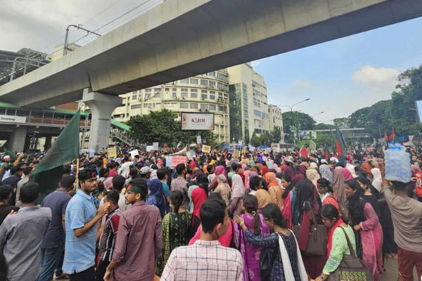 শনিবার (৬ জুলাই) বিকেল ৩টায় শিক্ষার্থীরা বিশ্ববিদ্যালয়ের প্রতিটি হল থেকে আলাদা ব্যানারে ঢাকা বিশ্ববিদ্যালয়ের সেন্ট্রাল লাইব্রেরির সামনে জড়ো হন। পরে সেখান থেকে বিশাল মিছিল নিয়ে হলপাড়া-ভিসি চত্বর-টিএসসি-বকশিবাজার-বুয়েট-ইডেন কলেজ-হোম ইকোনমিকস-নীলক্ষেত-টিএসসি হয়ে বিকেল ৫টায় শাহবাগ মোড়ে অবস্থান নেন শিক্ষার্থীরা।