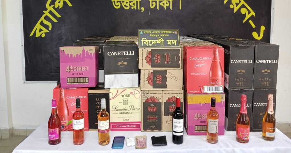 রাজধানীর খিলক্ষেত এলাকা থেকে বিপুল পরিমাণ বিদেশি মদসহ একটি পিকআপ ভ্যান জব্দ করেছে র্যাব-১। এসময় মাদক পাচারের অভিযোগে সোহেল রানা (৪০) নামে এক ব্যক্তিকে গ্রেপ্তার করা হয়েছে। পিকআপ থেকে মোট ৭১৬ বোতল মদ উদ্ধার করা হয়, যার পরিমাণ ৫৩৭ লিটার।