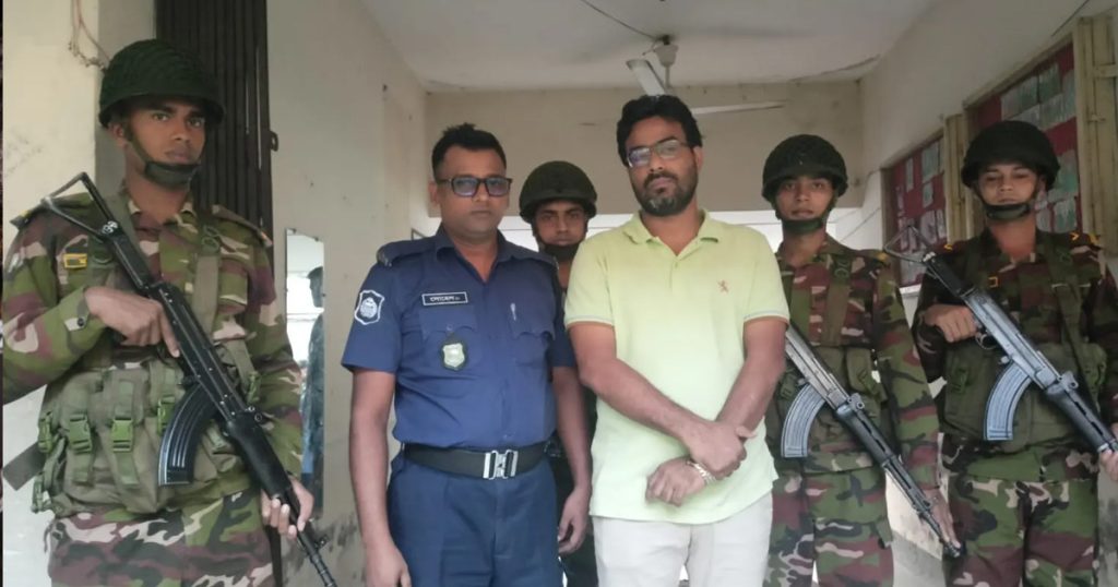 একটি চাঁদাবাজি মামলায় পিরোজপুর জেলা যুবদলের বহিষ্কৃত আহ্বায়ক মারুফ হাসান ওরফে মারুফ পোদ্দারকে (৪৮) গ্রেপ্তার করেছে পুলিশ। শুক্রবার (৮ আগস্ট) বিকেলে পুলিশের যৌথ অভিযানে মারুফের মালিকানাধীন পিরোজপুর শহরের আবাসিক বিলাস হোটেল থেকে তাকে গ্রেপ্তার করা হয়। পিরোজপুর সদর থানার ভারপ্রাপ্ত কর্মকর্তা মো. রবিউল ইসলাম এ তথ্য জানান।