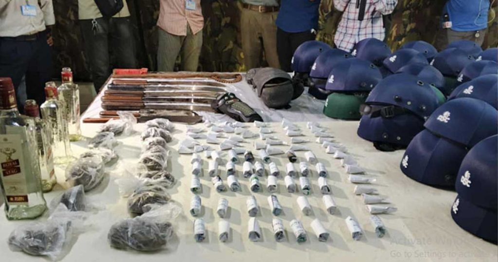নাজিম আহমেদ বলেন, অভিযান পরিচালনা করে মারামারি সামগ্রীগুলো পাওয়া যায়। বিশেষ করে বিভিন্ন হেলমেট ও দেশীয় অস্ত্র উদ্ধার করা হয়। এছাড়া ১৪ জনকে গ্রেপ্তার করা হয়েছে।