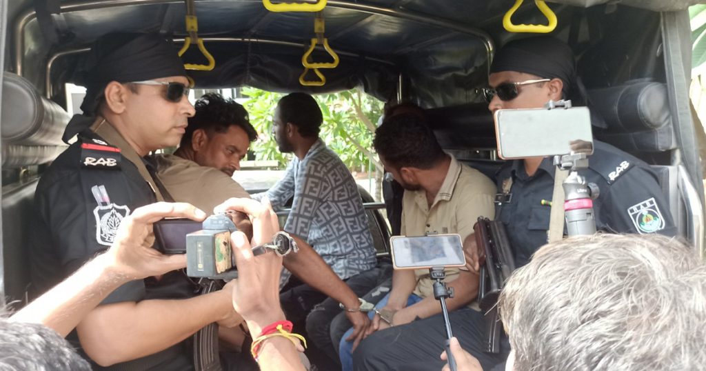 এসময় তারা গাড়ির গ্লাস ভেঙে আঘাত করে কাজটি সম্পন্ন করে। গ্রেপ্তার আসামিদের মধ্যে ১নং আসামি মফিজুল ইসলামহে জামিল বাবু এর নামে ৪টি (১টি হত্যা মামলা এবং ৩টি মারামারি) মামলা, ২নং আসামি সাইফুল ইসলাম সাকিব এর নামে ৪টি (২টি মাদক, ১টি নাশকতা এবং ১টি হত্যা) মামলা, ৩নং আসামি মানিক এর নামে ৩টি (১টি হত্যা মামলা এবং ২টি অন্যান্য) মামলা, ৪নং আসামি সাদ্দাম এর নামে ১৮টি (১০টি ডাকাতি, ২টি হত্যা, ৪টি মাদক, ১ টি অস্ত্র মামলা এবং ১ টি চুরি) মামলা, ৫নং আসামি সহিদ এর নামে ১টি হত্যা মামলা এবং ৬নং আসামি মনির হোসেন এর নামে ৫টি (২টি চুরি মামলা, ২টি মারামারি মামলা এবং ০১টি মাদক) মামলা রয়েছে।